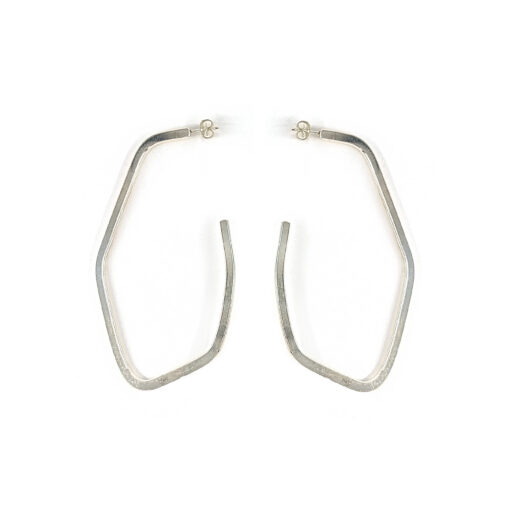 The gently bent silver line create an architectural silhouette: strong yet light, structured yet fluid. The open form allows space to become part of the design, letting movement, light, and shadow complete the piece while worn.