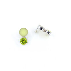 Two circular elements meet in a calm dialogue: a softly toned surface paired with a sparkling stone. The clean geometry keeps the design minimal, while light and reflection bring depth and emotion. A gentle evolution of a classic shape, transformed through material, colour, and proportion.
