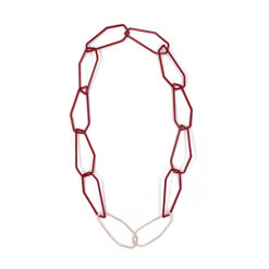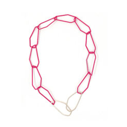 The necklace is not openable and slips on effortlessly, designed as a continuous loop. Available in five different colours. Each piece exists only once within this collection.