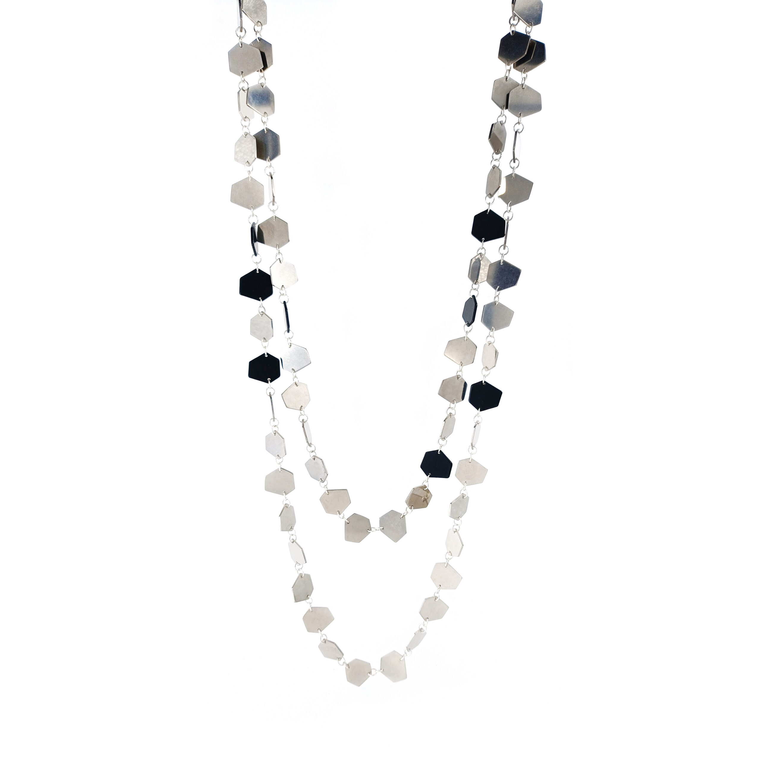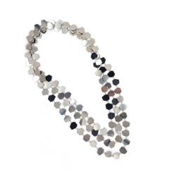 With its generous length of 228cm, the necklace invites interaction. It cannot be opened, but can be worn once, twice, or three times around the neck, creating completely different looks: from long and graphic to layered and sculptural. Each way of wearing reveals a new character.